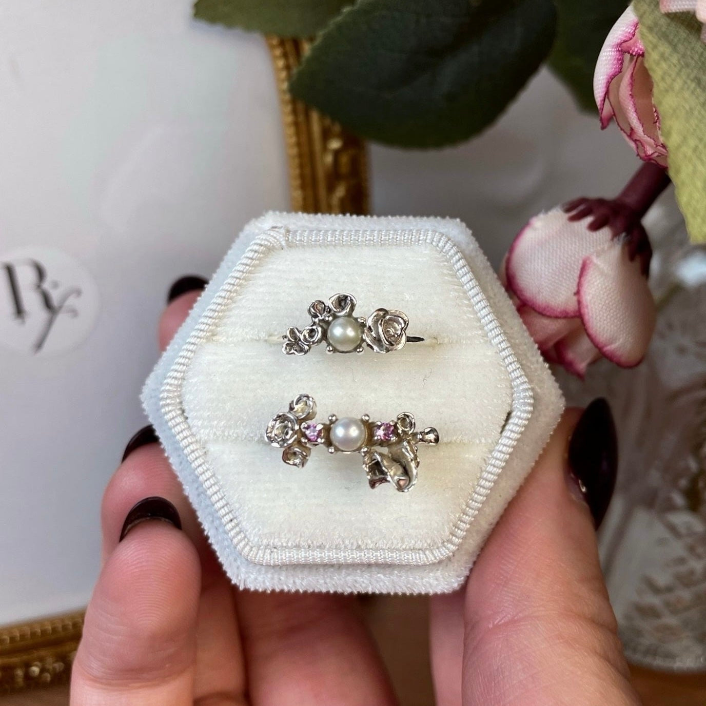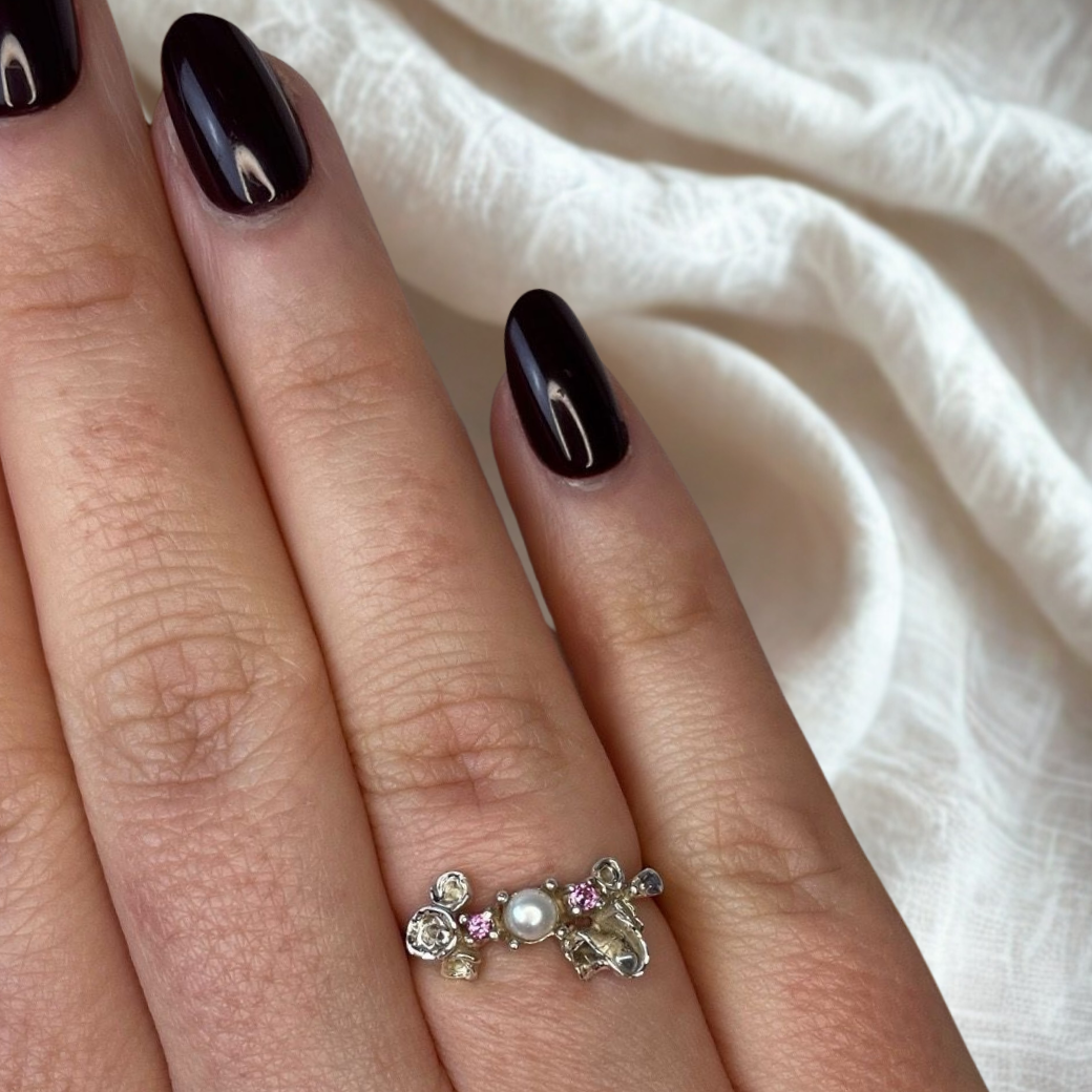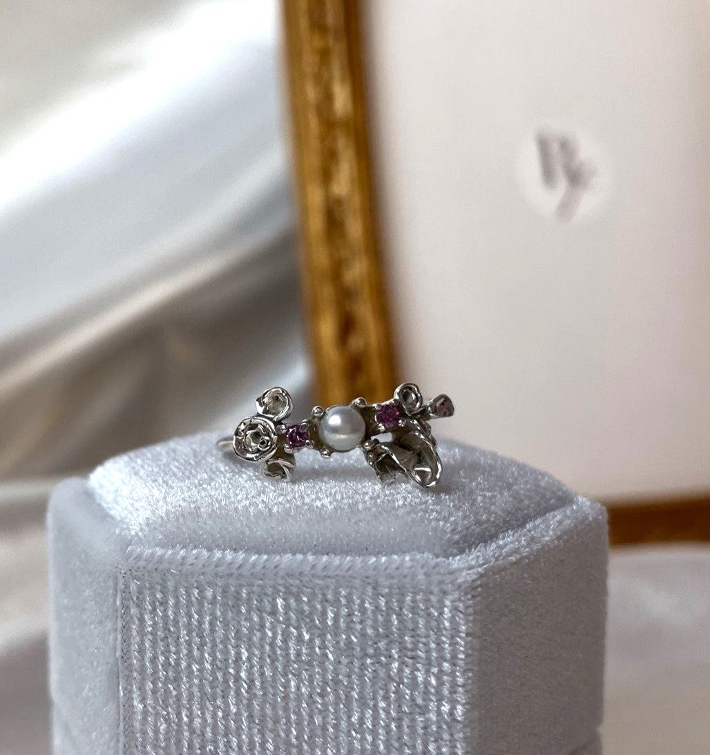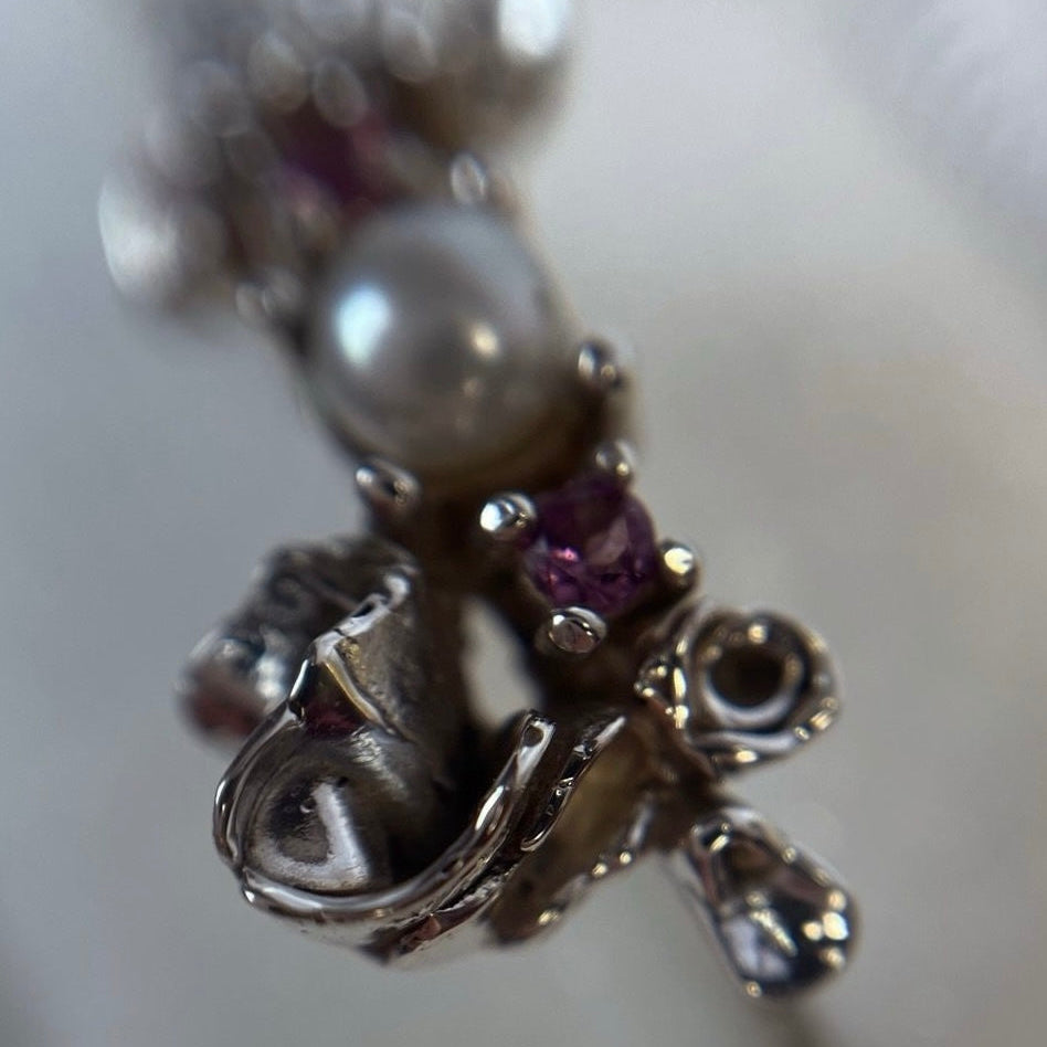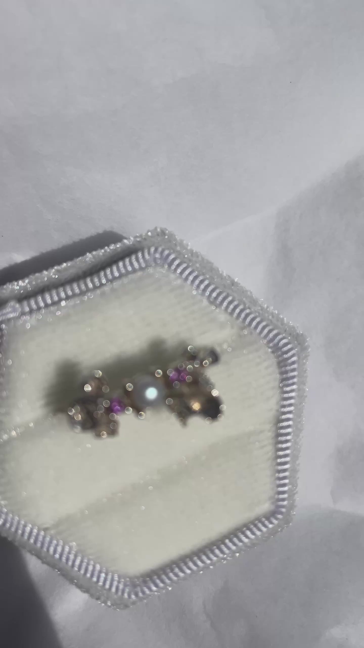The pearl at the center of the design adds the finishing touch to this magical piece . Pure beauty .