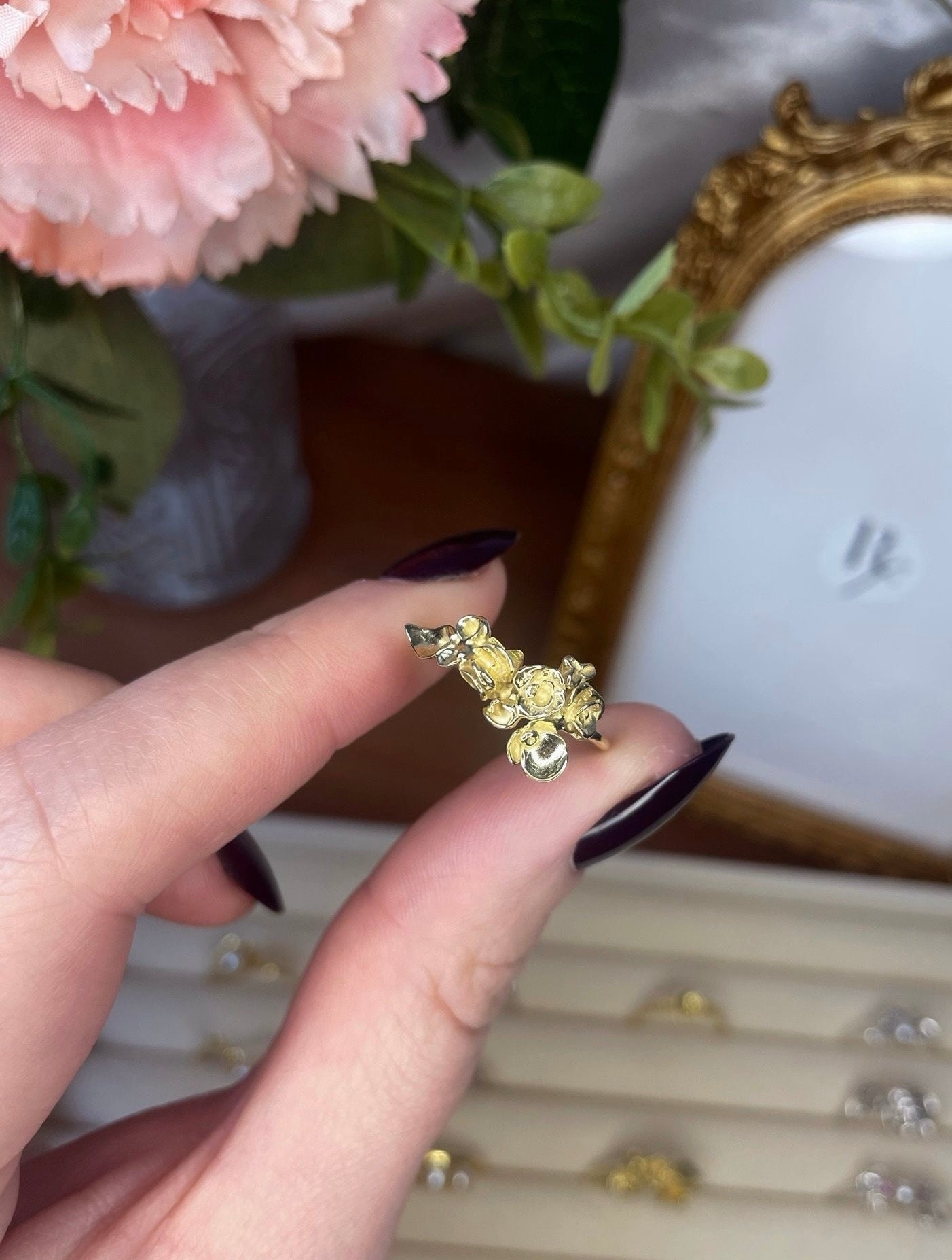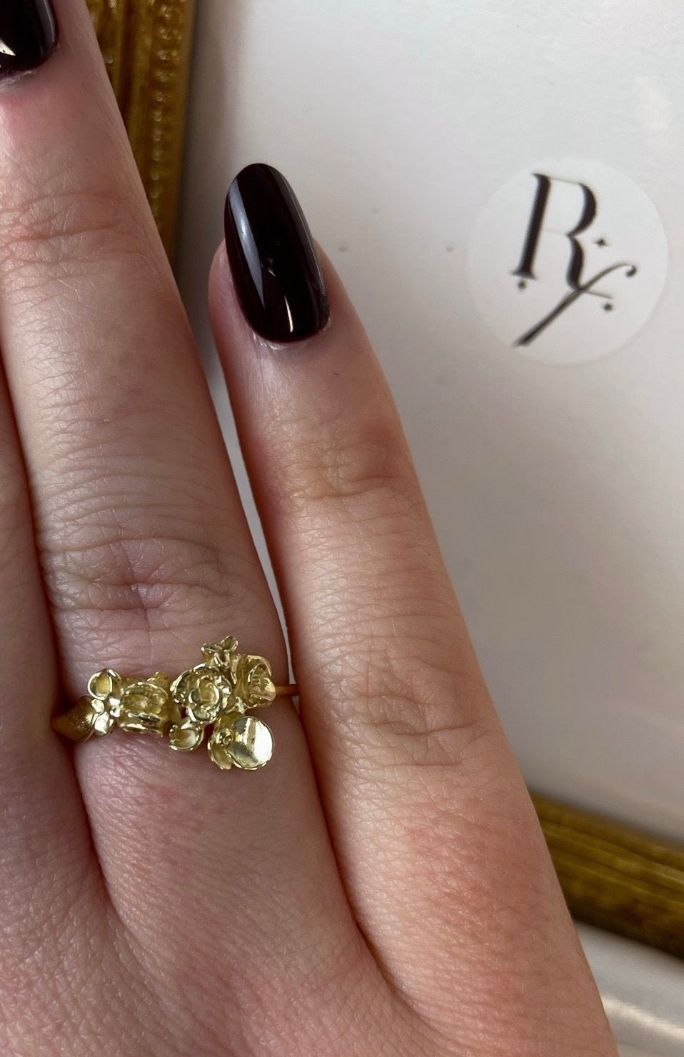 A floral composition crafted into a jewel . Lilies, pansies, orchids, camellias… among other flowers, come together in the most beautiful way, to give life to a unique piece.