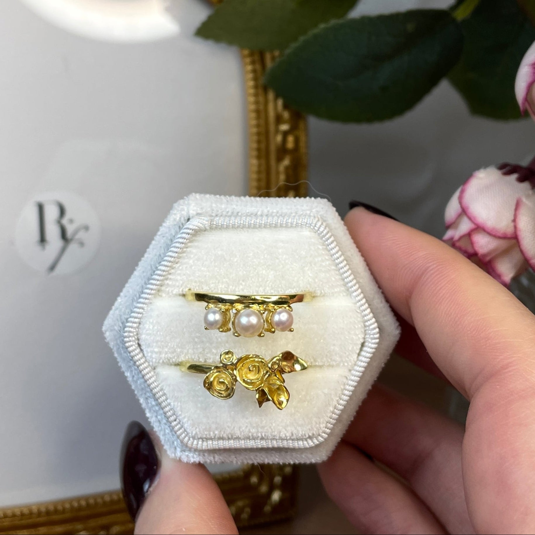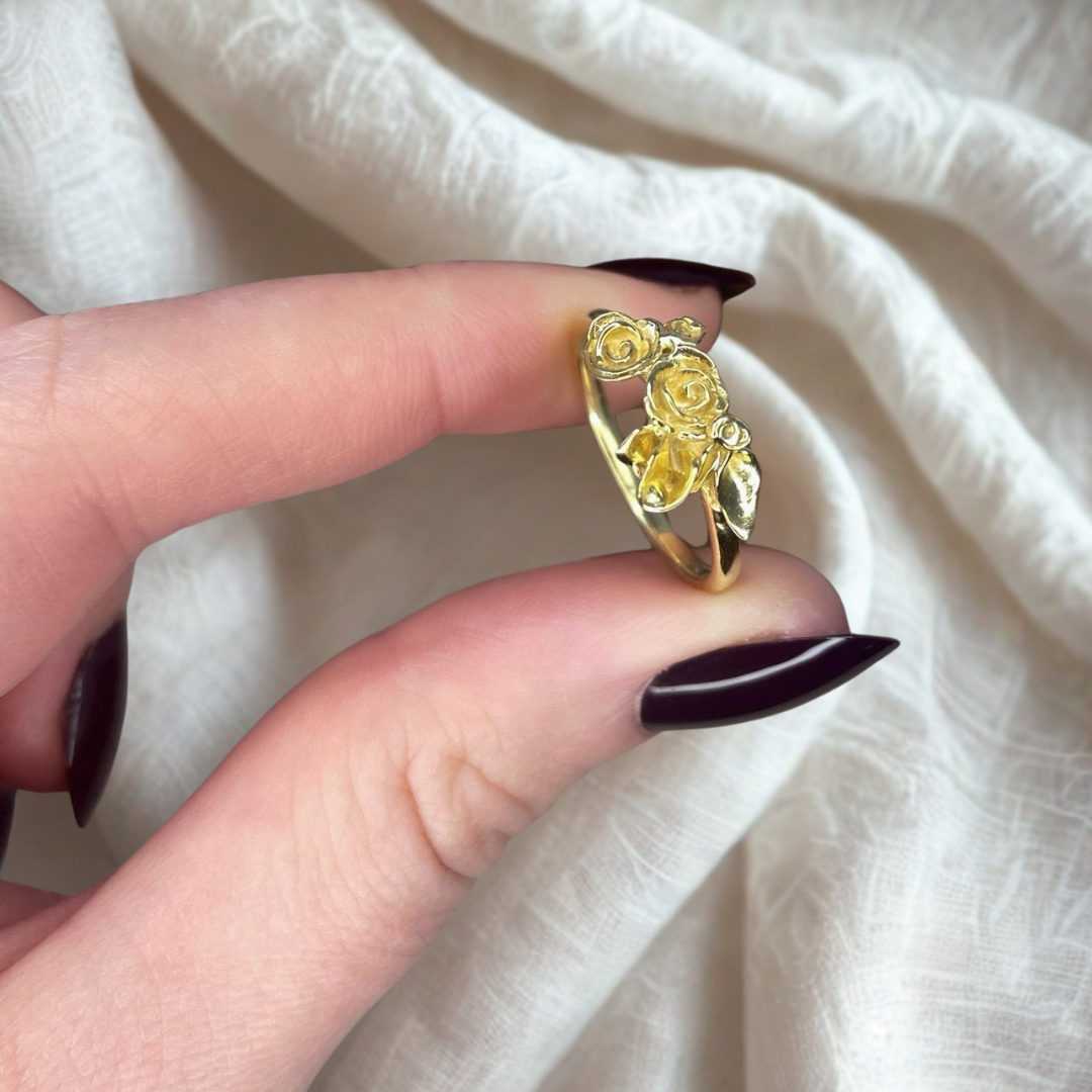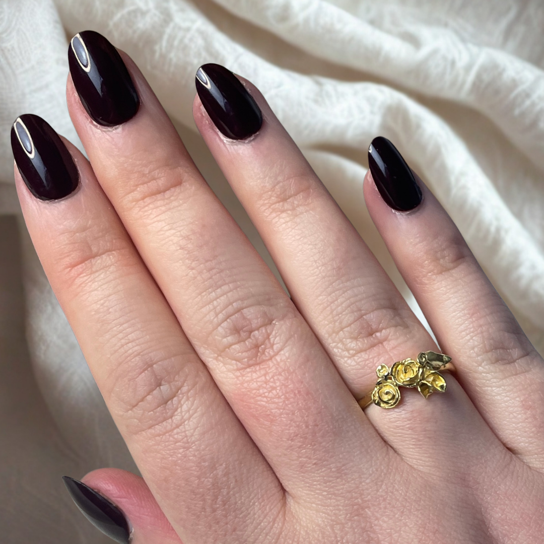 Its precisely carved floral composition combines soft shapes and organic details , giving life to a unique, original and delicate piece.