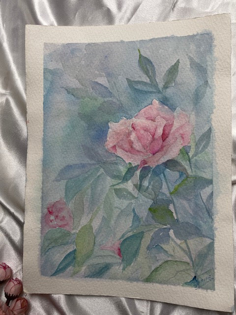 La delicadeza y el romanticismo de las rosas se plasman a la perfección en esta acuarela, una obra atemporal.