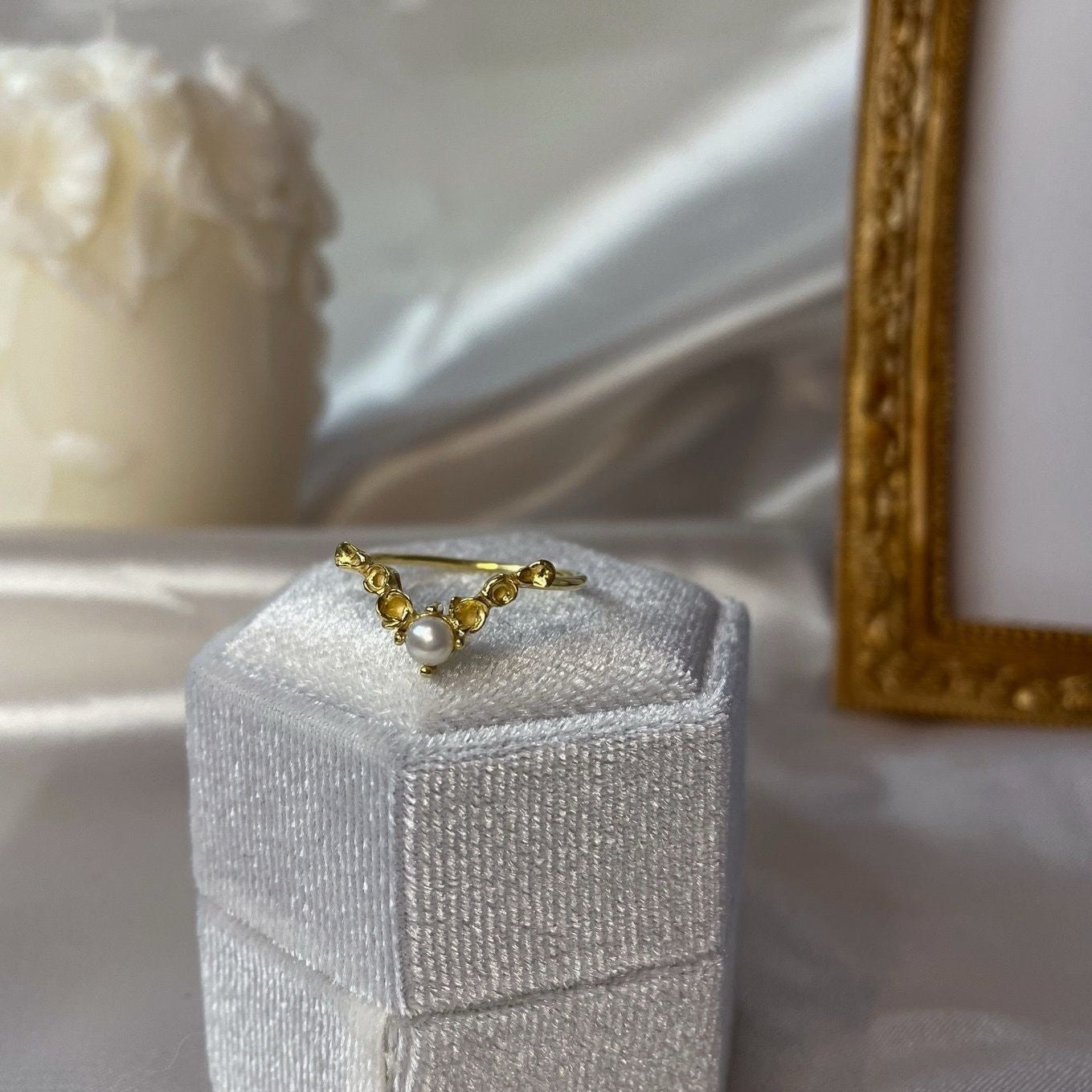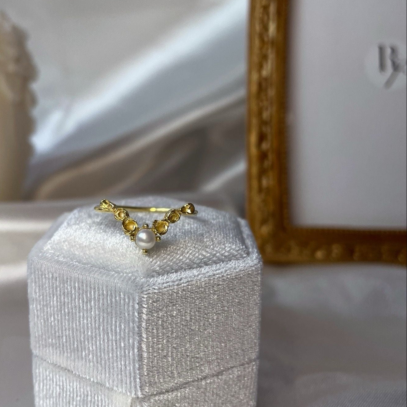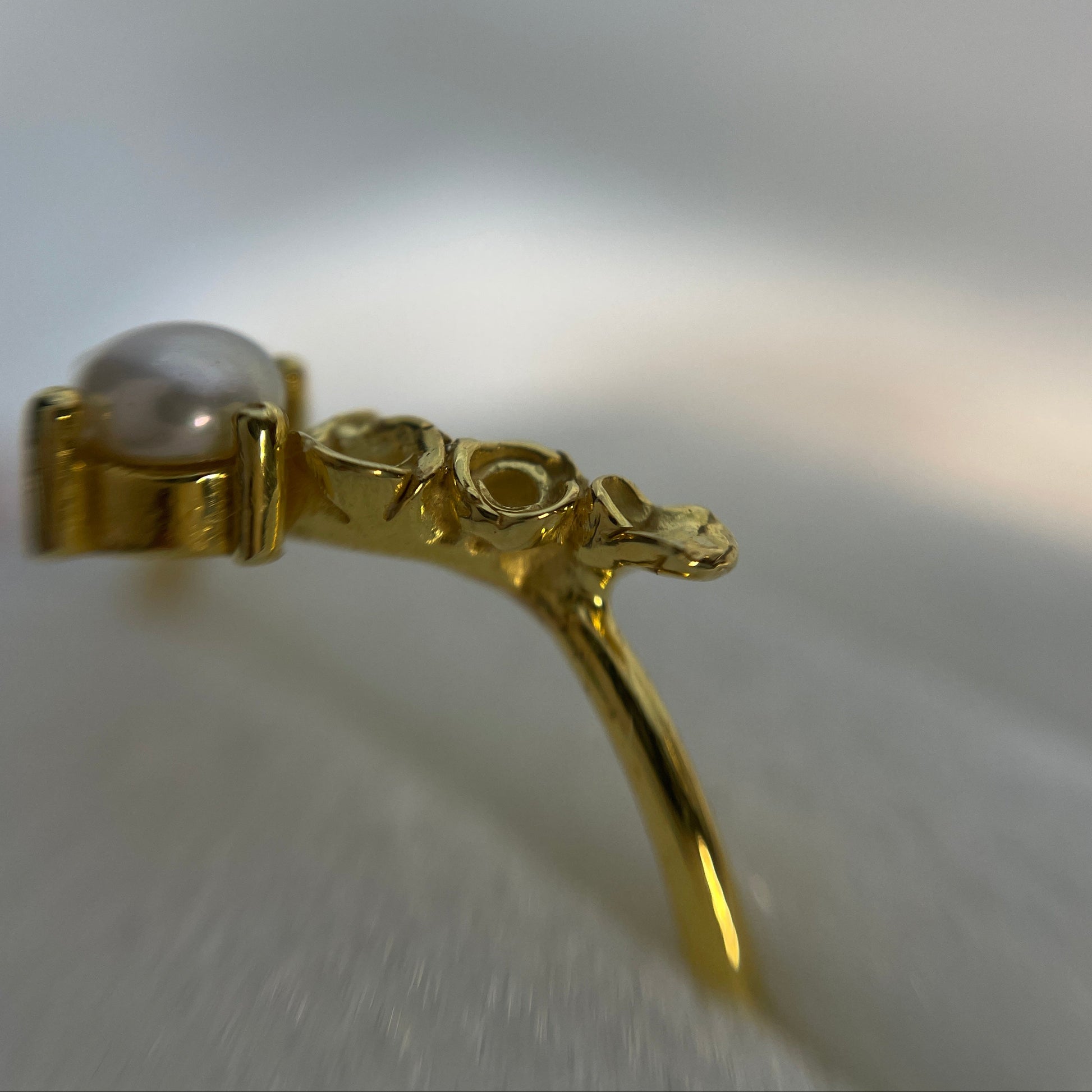 Un precioso anillo, en el que una delicada enredadera de flores abrazar una perla central, creando una armoniosa forma en “V” . La característica forma de esta pieza, hace que sea muy combinable con otros anillos de piedra central. Naturaleza convertida en arte.