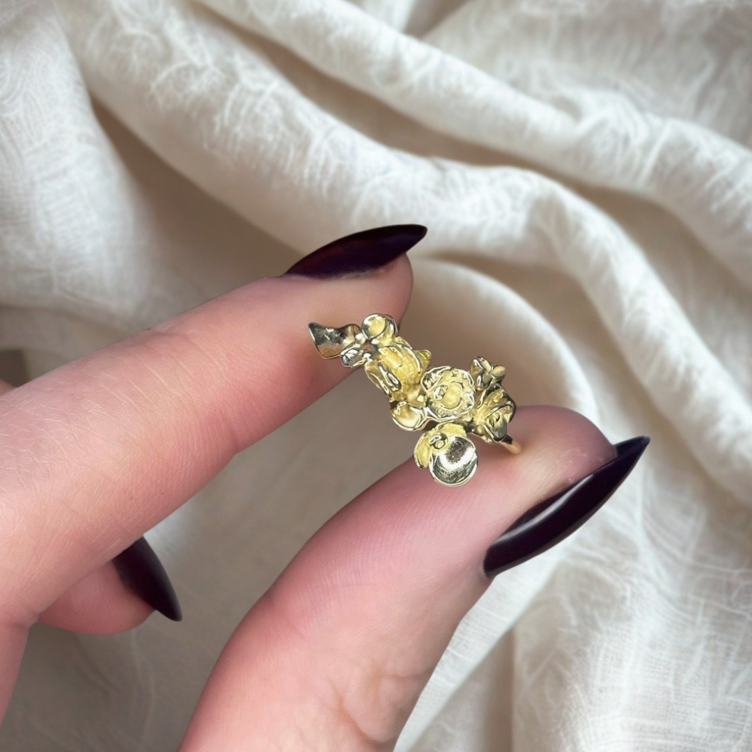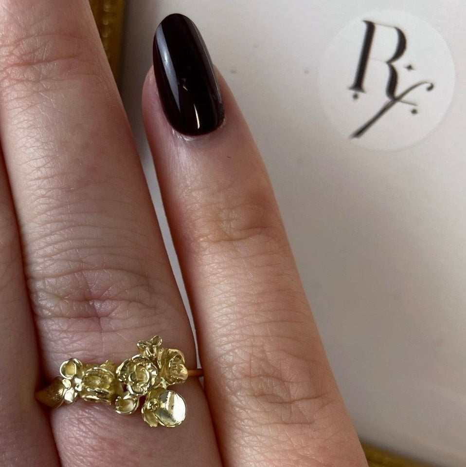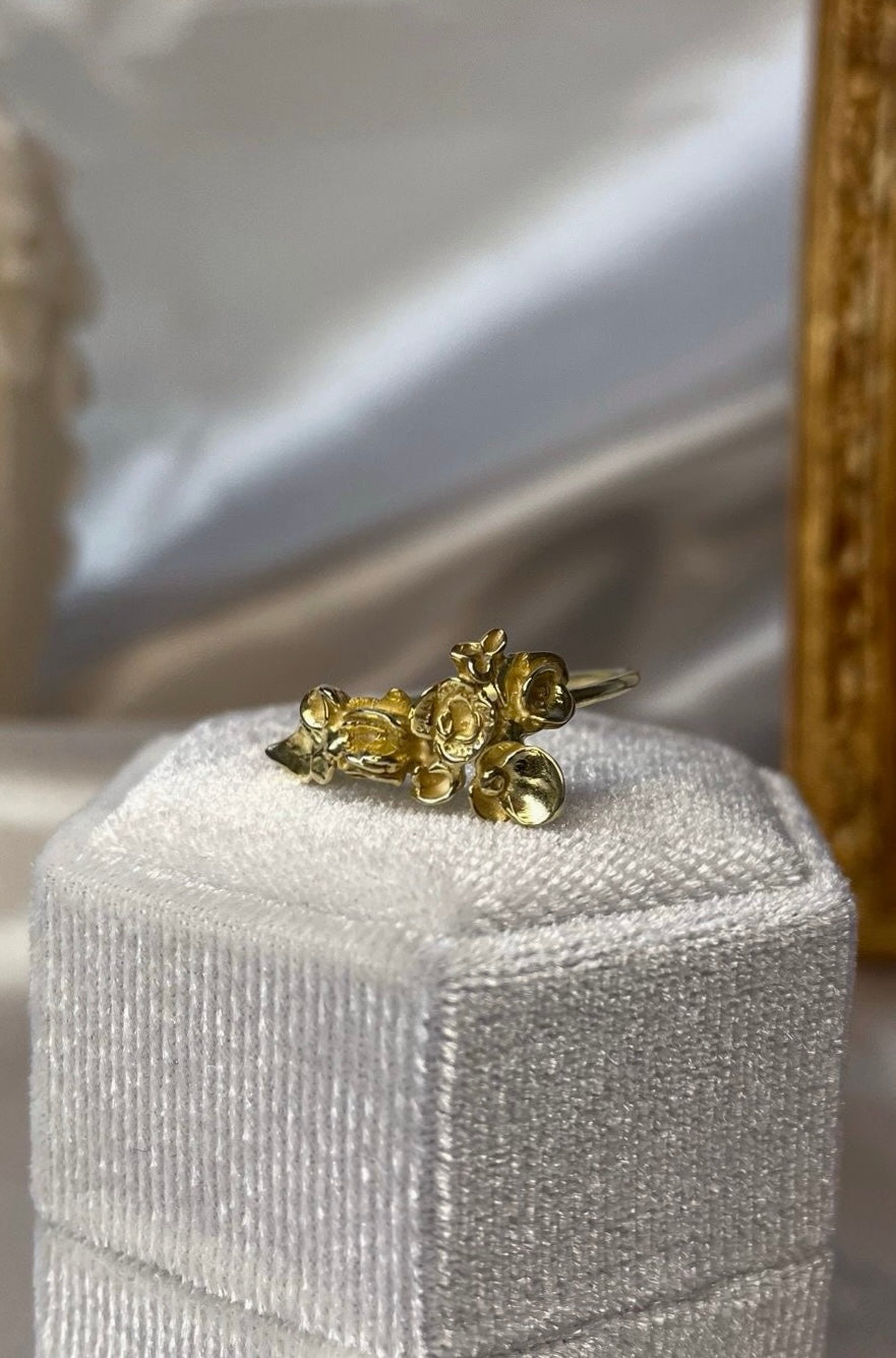 Delicadas flores parecen brotar de este anillo.