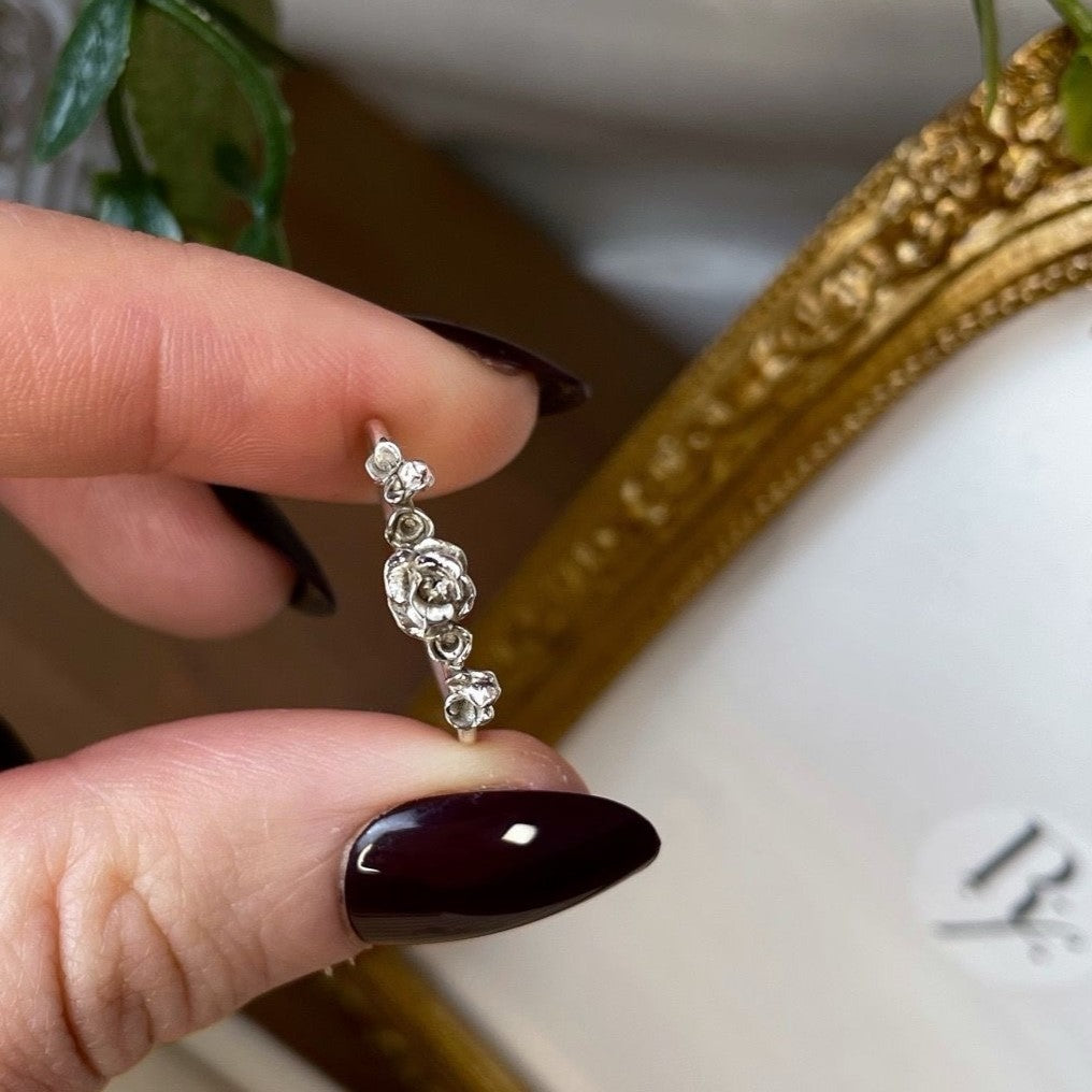 Un precioso anillo inspirado en la elegancia y serenidad de los jardines en flor. Sutil y refinado, su sencillez realza la belleza de cada detalle.