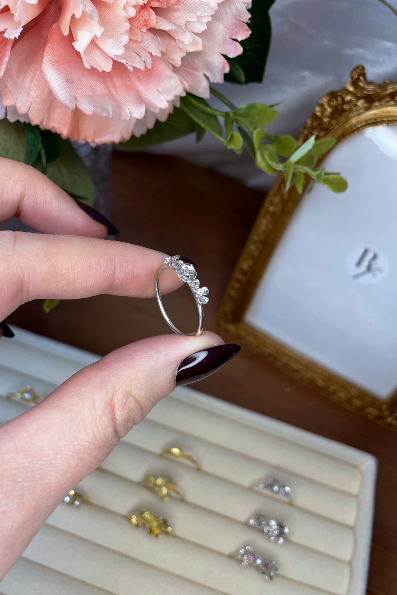 Por este mismo motivo, tu joya puede presentar ligeras variaciones respecto a la imagen, así como pequeños detalles propios del trabajo manual y del acabado delicado y orgánico de cada pieza.